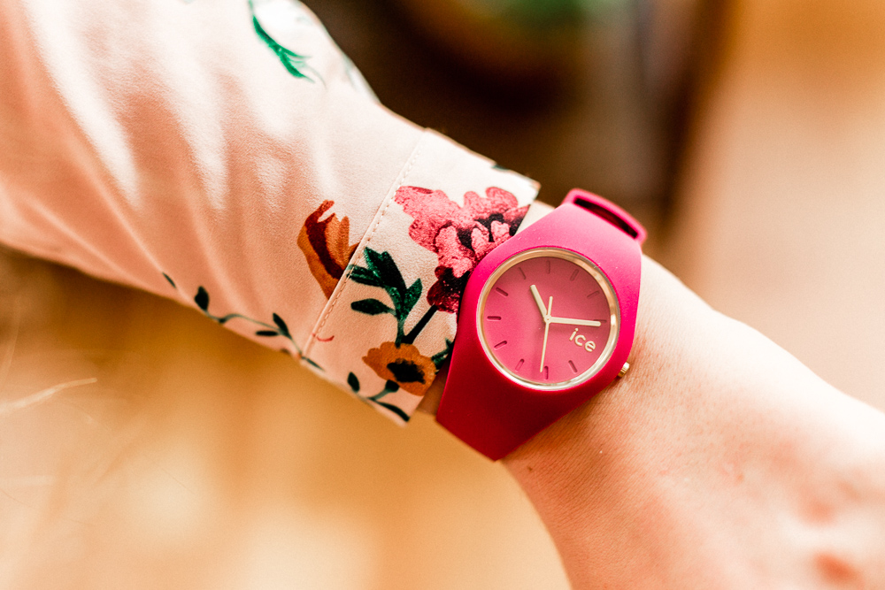 Die Uhr, die ich mir bei Ice-Watch ausgesucht habe, die ICE GLAM FOREST ANEMONE, hat mir sofort gefallen, da sie eine Mischung aus Sportlichkeit und Eleganz ist. Mir fiel es nur ziemlich schwer, aus den ganzen schönen Farben zu wählen. Im Endeffekt hab ich mich für den leuchtenden Beerenton entschieden, weil er einfach so schön mit dem Gold zusammen aussieht. Ich kann die Uhr sowohl super gut im Alltag zu Hause tragen, wenn es nur für Leggings und Oversize-Sweater reicht, als auch zu einer eleganten Bluse zum Beispiel an den Feiertagen.
